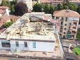 Si sono concluse nella notte le operazioni di messa in sicurezza della palazzina di Chiavazza, investita in pieno da una tromba d'aria (leggi qui) nella notte appena trascorsa. Le forti raffiche di vento hanno letteralmente scoperchiato parte del tetto, finito nel cortile interno e nelle vie adiacenti. Non è ancora nota la stima effettiva dei danni ma, a giudicare dalle foto col drone, sembrano notevoli. Le immagini dall'alto raffigurano un quadro desolante della situazione.