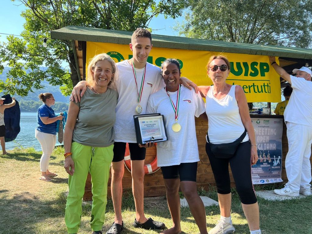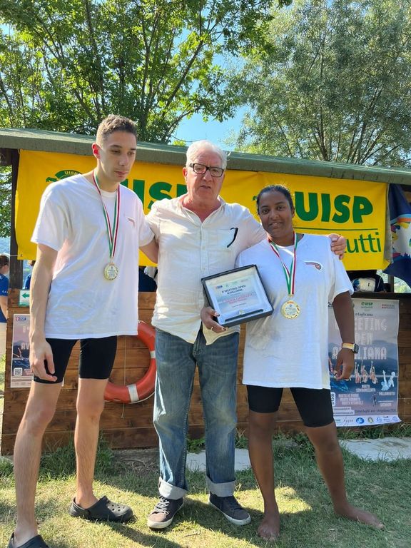 Biolcati Michela in questo caso nel ruolo di tecnico-atleta, assieme all’atleta Galdini Samuele, entrambi tesserati ASD Centro integrazione sportiva (affiliata Uisp biella e nazionale ) ed in collaborazione con ASD Pinna Sub San Vito (FIPSAS) ricevono la medaglia d’oro e la targa di premiazione dall’assessore allo sport e salute di Avigliana Rossella Morra, il responsabile Uisp Piemonte Nunzio di Stefano, alla vicepresidente Nazionale Uisp Patrizia Alfano; La prima (Biolcati) in qualità di campionessa nuoto pinnato disabili la seconda (ASD San Vito Tagliamento) come prima società classificata categoria paralimpica nuoto pinnato.
