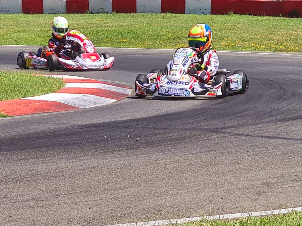 Dopo un'ottima qualificazione in terza posizione, il piccolo portacolori della scuderia rally & co, replica il podio sul gradino più basso in gara 1 a solo un decimo dalla seconda piazza, mentre in finale è stato costretto al ritiro a causa della rottura della catena mentre era saldamente in seconda posizione; "purtroppo queste sono le gare" dicono in coro papà Luca e mamma Giada a fine gara pensando già alla prossima gara il 23 luglio sul circuito South Garda di Lonato in provincia di Brescia.