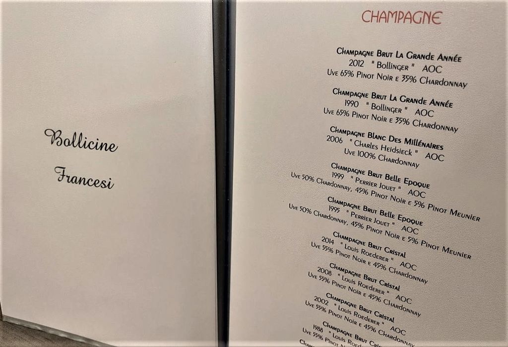 La carta dei vini di Grilli dispone oggi di una scelta davvero molto ampia, dal calice alla bottiglia, e viene aggiornata di settimana in settimana. Le bollicine proposte sono francesi e italiane; quelle provenienti dall’Italia hanno moltissime alternative in termini di prezzo, di tipologia e di annata, con diverse verticali all’interno della carta: questo significa che, lo stesso vino, viene proposto in annate differenti. Parlando proprio di verticalità, forse non tutti sanno che i vini di alta qualità non vengono prodotti ogni anno: questo accade perché seguono l’andamento climatico e di altri fattori esterni legati alla vigna che, irrimediabilmente, incidono sulla bontà del vino stesso.