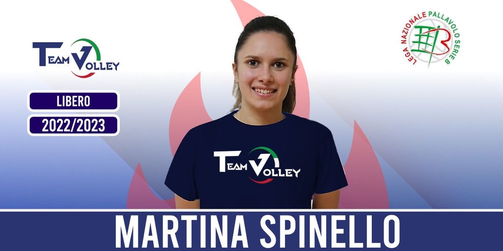 «Martina Spinello l'abbiamo incontrata da avversaria nello scorso campionato di Serie C - puntualizza il ds Marco Motto -. Ha una buona esperienza nel ruolo di libero e ci ha fatto percepire una notevole voglia di mettersi in gioco in una categoria superiore. Questo, oltre alle sue doti tecniche, è stato uno dei fattori che più ci sono piaciuti e ci hanno spinto a portarla al TeamVolley, cosa che, va sottolineato, anche lei ha voluto fortemente. Con la reciproca volontà di trovare un accordo tutte è stato molto semplice. Sicuramente il nostro staff tecnico saprà gestirla al meglio e con la sua voglia di mettersi in gioco ci aspettiamo soddisfazioni per lei e per la squadra. A Martina, il nostro più sincero benvenuta!».
