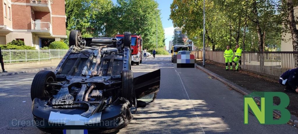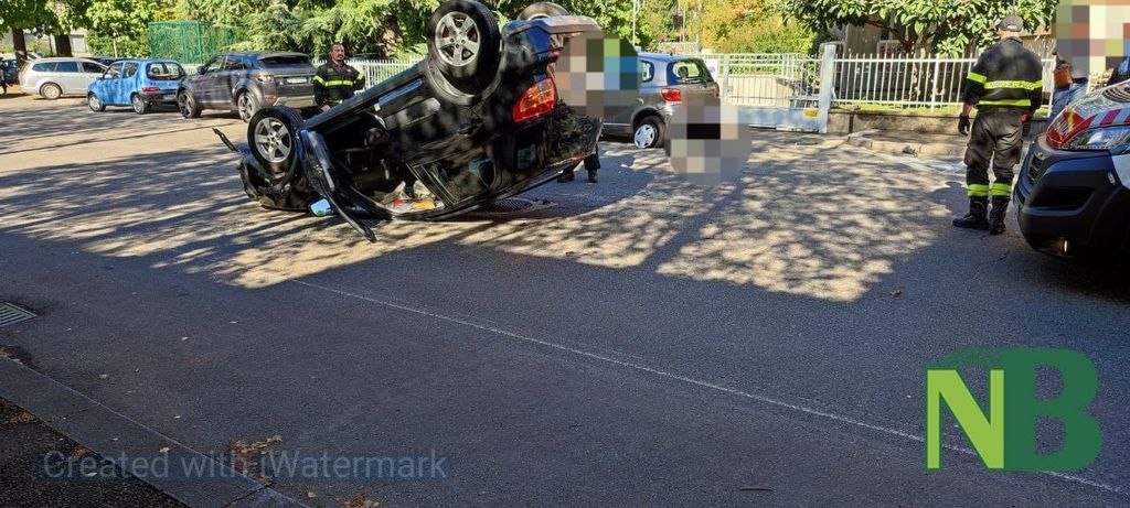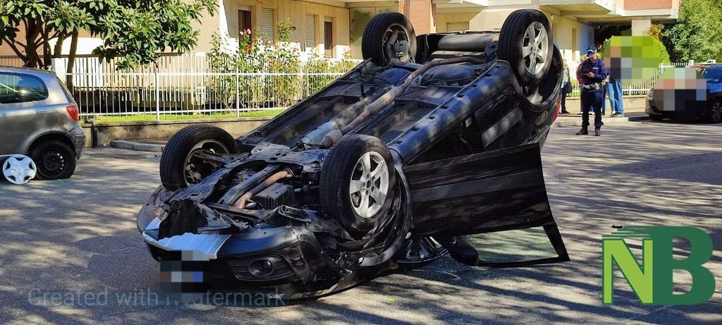 Per cause ancora da accertare, una macchina si è ribaltata e nella sua corsa è andata a sbattere anche contro un'auto in sosta.