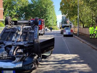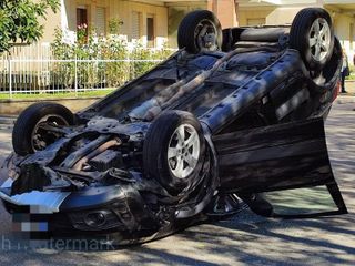 Per cause ancora da accertare, una macchina si è ribaltata e nella sua corsa è andata a sbattere anche contro un'auto in sosta.