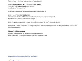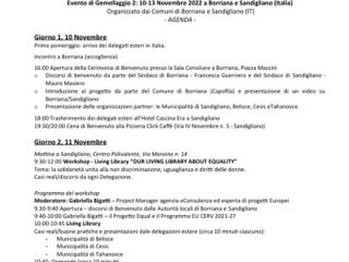 Questo il programma di EQUAL. Cerimonia di benvenuto giovedì 10 novembre alle 16 a Borriana. Venerdì 11, per tutto il giorno, Workshop a Sandigliano. Sabato 12 novembre la firma del Patto di Fratellanza a Borriana.