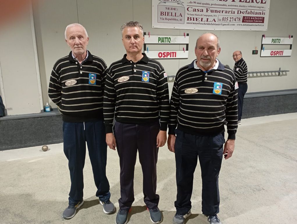 Delorier, Bracco, Lacognata di Piatto Sport battono 13-3 la terna della Burcina formata da Martinotti, Cerruti, Mosca, e si aggiudicano la Poule Notturna Maschile al bocciodromo “Alberto Viotto” di Piatto.