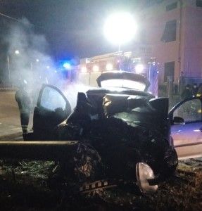 A seguito del forte impatto, il mezzo ha però preso fuoco, che è stato spento dai Vigili del Fuoco una volta giunti sul posto.