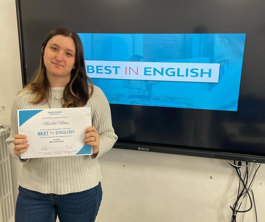 PRIMA IN ITALIA E 267 NEL MONDO SU 22.800 STUDENTI, Matilde Milan è l’allieva del Bona Turismo, classe quinta, che si è classificata come la migliore studentessa di inglese al contest internazionale Best in English. Il progetto Best in English è seguito dai Proff Enea Grosso e Andrea Boario.