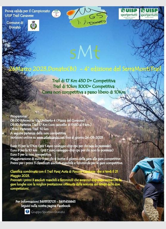 A Donato domenica 26 marzo è in programma la 4° edizione del SerraMontiTrail che unisce Biellese e Canavese attraverso un bell'itinerario tra i boschi della Serra Morenica e le pendici delle Alpi Biellesi.