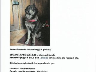 Sila manca da casa da due giorni. L'ultimo avvistamento è stato questa mattina alle 9,30 in via La Marmora a Vigliano e i proprietari hanno organizzato per domani, sabato 1 aprile un ritrovo di amici runner, ciclisti, trekker e amanti dei cani per andare tutti assieme alla ricerca di Sila.