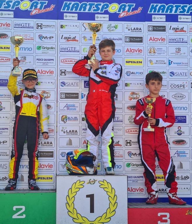 Dopo una brillante partenza, in gara uno arriva al traguardo secondo assoluto e primo tra gli under 10 ottenendo il giro più veloce mentre una lotta fino all'ultima curva esalta il pubblico nella gara finale dove De Grandi arriva nuovamente secondo assoluto e primo di under 10 con uno scarto dal vincitore di soli due decimi che lasciano intuire quanto sia stata tirata l'ultima manche. Soddisfazione al massimo per papà Luca e mamma Giada onnipresenti al seguito di Leonardo portando in alto la bandiera della loro amata Valsessera.
