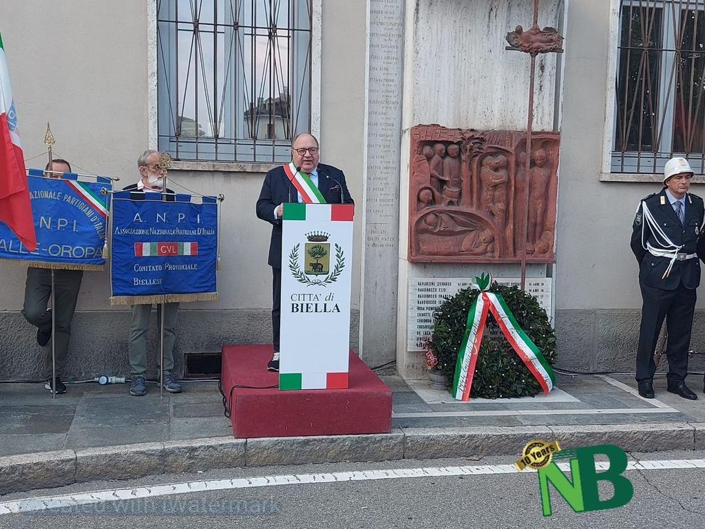 Al ritrovo delle 18 sotto i portici di palazzo Oropa, è seguito il corteo in via Italia fino al monumento ai Caduti, dove è stata deposta una corona d'alloro. Qui, davanti alle istituzioni e alle associazioni, hanno preso la parola il sindaco Claudio Corradino e il presidente provinciale dell'Associazione Nazionale Partigiani d'Italia Gianni Chiorino.