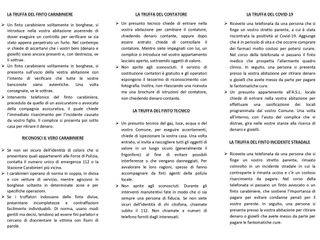 Entrando nei dettagli, il protocollo prevede la realizzazione (a cura della Fondazione CR Biella) di 500 manifesti informativi e 50mila volantini pieghevoli, contenenti un vademecum ricco di consigli, utili a proteggersi dai tentativi di subire raggiri, come la truffa del finto tecnico o del finto incidente stradale, (vedi le foto in allegato). L'Arma dei Carabinieri, invece, provvederà a consegnare il materiale informativo presso l'Ospedale, gli ambulatori medici e le farmacie dei paesi attraverso i propri Comandi Stazione presenti in tutta la provincia. Infine, sarà compito dell'ASL Biella, affiggere i manifesti e collocare i volantini presso le sale d'attesa dei reparti di geriatria, medicina e fisiatria dell'Ospedale, nonché negli ambulatori dei medici di base. Sempre il personale sanitario, insieme ai 104 medici di base e ai 74 farmacisti del territorio biellese, distribuirà i dépliant alle persone anziane che si recano in farmacia, ospedale e ambulatori.