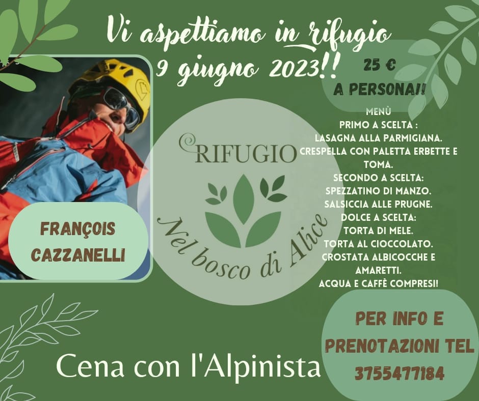 Dopo il grande successo dell'anno scorso con il grande alpinista Hervè Barmasse, anche per questa estate il rifugio organizzerà una serie di eventi con menù dedicato chiamati “A cena con l’Alpinista”, all’insegna di alpinismo e arrampicata: il primo avrà luogo questa sera, venerdì 9 giugno, con l’ospite François Cazzanelli.