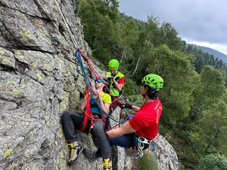 Prove ed esercitazioni per il Soccorso Alpino biellese. Nella giornata odierna, oltre 10 i partecipanti, tra tecnici e operatori, che si sono dati appuntamento alla falesia dell'Argimonia, tra Trivero e Bielmonte, per cimentarsi nelle attività di supporto e recupero di infortunati in parete con calate alla base, tecniche di immobilizzazione e utilizzo corretto dei vari presidi di nuova generazione.