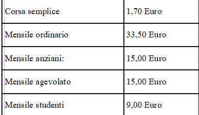Questi i costi dei titoli di viaggio per l'utenza: