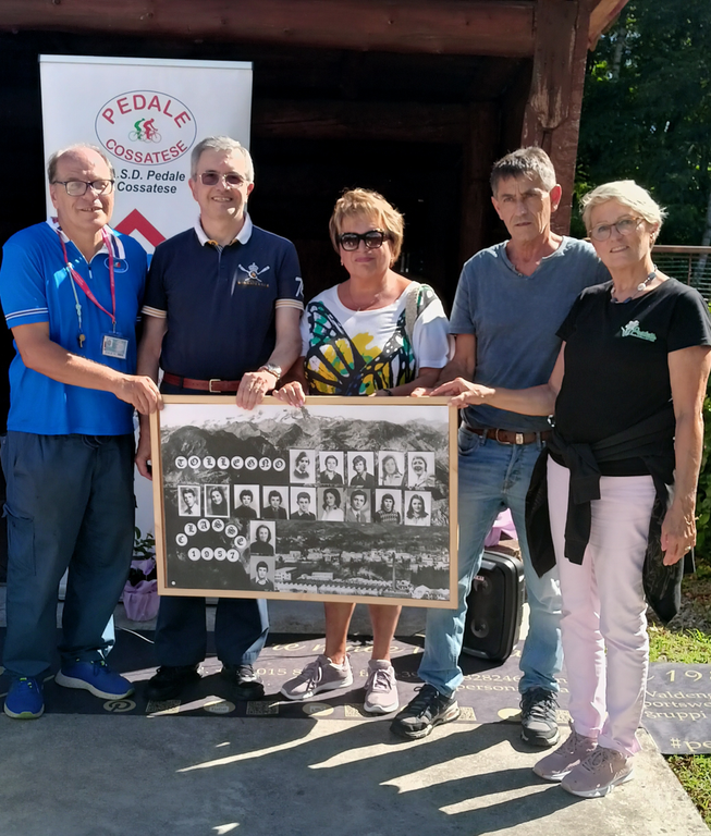 Il Presidente della ASD Pedale Cossatese Gionni MIscioscia ex Tollegnese ha dedicato premi speciali alle Donne e debuttante, in ricordo della coscritta Tollegnese Irene Lozia recentemente mancata. Alla premiazione pertanto hanno aderito anche il gruppo dei coscritti Tollegnesi della classe 1957.