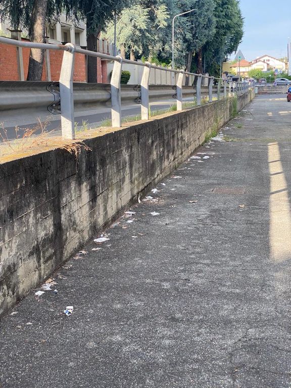 Vicino all'area carico-scarico vengono gettati gli imballaggi fuori dal cancello di OBI. Purtroppo non si è mai visto uno spazzino. In più i container dei rifiuti sono aperti e, quando c'è vento, molti rifiuti finiscono sulla strada. Risultato una discarica continua. Un problema più volte segnalato dalla cittadinanza. Già qualche anno fa il già sindaco Elena Chiorino si era interessata al problema. Con questa amministrazione alcuni di noi, più volte, hanno segnalato l'accaduto. La risposta è stata 'è tutto a posto'. Talmente a posto che camminiamo in mezzo alla spazzatura”.