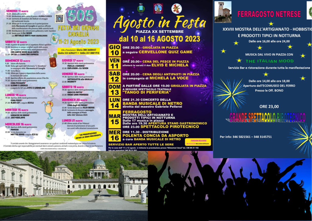 - Cossato, festa dell'Assunta. Dalle 10 è previsto l'arrivo delle autorità, alle 10,30 la Santa Messa sarà officiata da Monsignor Alceste Catella, Vescovo emerito di Casale Monferrato e alle ore 20 ci sarà la Santa Messa alla Spolina