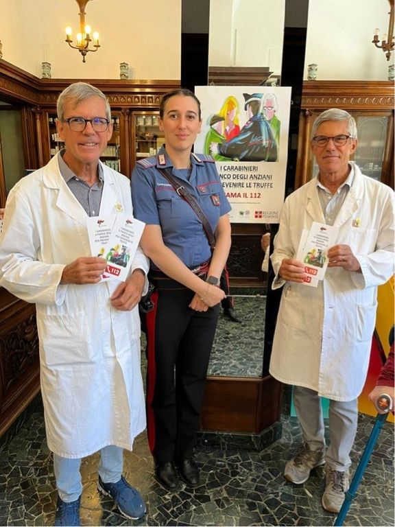 In tale contesto, dopo che nei giorni scorsi si è consegnato all'Ospedale di Biella, i manifesti da affiggere nelle sale d'attesa dei Reparti di geriatria, medicina e fisiatria del locale nosocomio, nonché dei volantini pieghevoli per ciascuno dei medesimi Reparti, i Comandanti delle dipendenti Stazioni, attraverso le proprie pattuglie, stanno provvedendo alla consegna del materiale informativo presso gli ambulatori dei medici di base, un manifesto da affiggere nella sala d'attesa e vari volantini, che i medici saranno invitati a distribuire ai propri assistiti anziani in occasione di incontri con essi e presso le farmacie della Provincia, un manifesto da affiggere e molteplici pieghevoli che i farmacisti saranno invitati a consegnare ai propri clienti potenzialmente interessati.