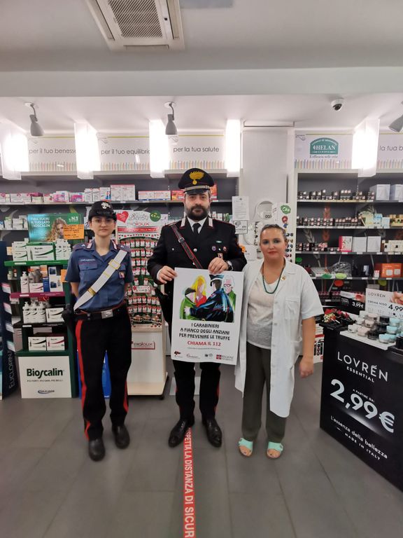 In tale contesto, dopo che nei giorni scorsi si è consegnato all'Ospedale di Biella, i manifesti da affiggere nelle sale d'attesa dei Reparti di geriatria, medicina e fisiatria del locale nosocomio, nonché dei volantini pieghevoli per ciascuno dei medesimi Reparti, i Comandanti delle dipendenti Stazioni, attraverso le proprie pattuglie, stanno provvedendo alla consegna del materiale informativo presso gli ambulatori dei medici di base, un manifesto da affiggere nella sala d'attesa e vari volantini, che i medici saranno invitati a distribuire ai propri assistiti anziani in occasione di incontri con essi e presso le farmacie della Provincia, un manifesto da affiggere e molteplici pieghevoli che i farmacisti saranno invitati a consegnare ai propri clienti potenzialmente interessati.