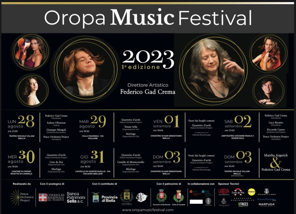 Fondato dal giovane pianista e visionario Federico Gad Crema, l'Oropa Music Festival è un festival di una settimana ai piedi di una delle valli più belle d'Europa, dove solisti di fama mondiale si esibiranno insieme a direttori d'orchestra di fama internazionale e all'innovativo POP Orchestra.