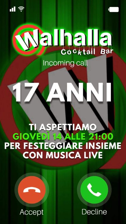 17 anni e non sentirli minimamente. Era il 14 settembre 2006: un giovane di belle speranze decide di mettersi in gioco e aprire un locale in Riva. Ha un nome strano, di ascendenza e derivazione nordica: Walhalla Cocktail Bar. Fin da subito, si rivela un grande successo e, in poco tempo, diventa un luogo ideale per i giovani della nostra provincia.