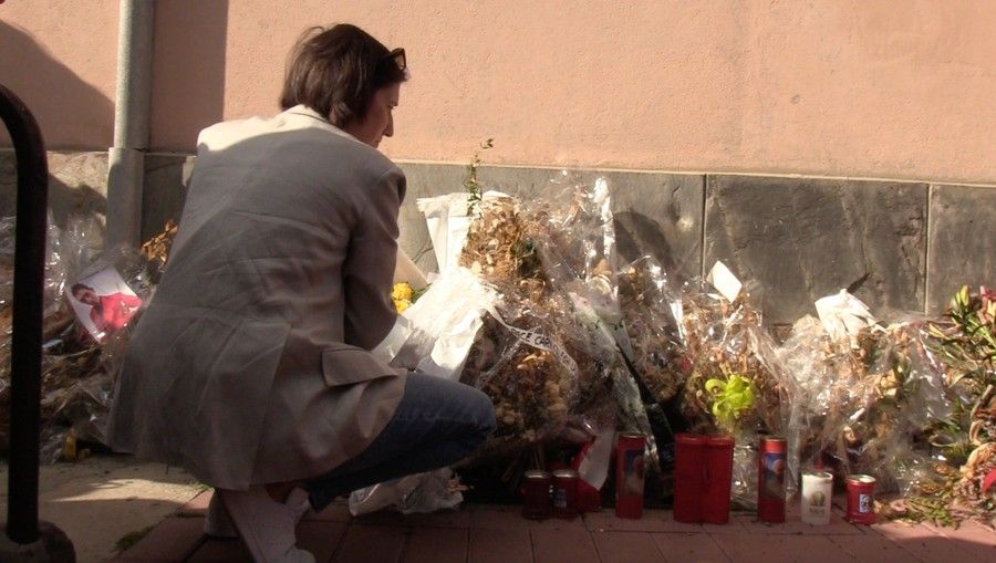 Un mazzo di fiori di fronte alla stazione