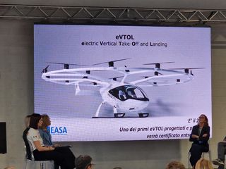 Paolo Pari, presidente e direttore generale di Digisky, ha descritto il mondo dei droni per il trasporto di persone, presentando i progetti dei veicoli elettrici a decollo e atterraggio verticale in fase di omologazione e spiegando che il settore unisce aerospazio e automotive aggregando le fortissime competenze del Piemonte.