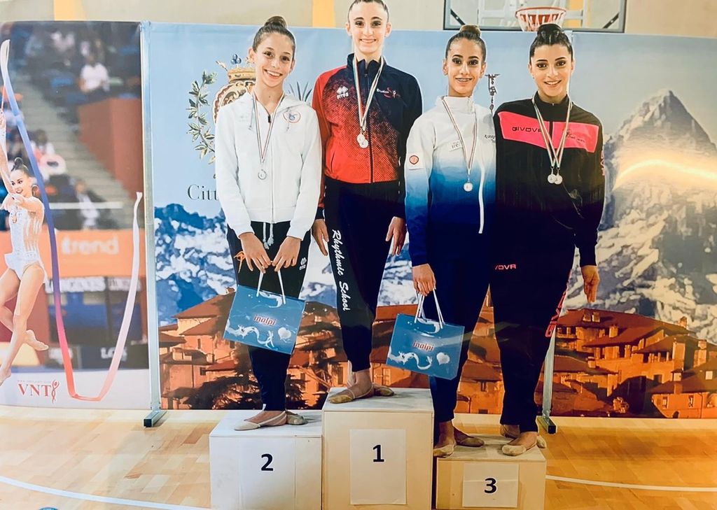 Buona la performance d’esordio in questo livello, si classifica quarta al cerchio a un soffio dal podio e veste un incredibile bronzo al corpo libero. Prosegue Adanaia Arina (2010) che con forza e determinazione si porta a casa un ottimo quinto posto nella specialità palla, sesta alle clavette. Meirone Letizia, classe 2009, presente per aprire la sua stagione nel livello gold, con le specialità nastro e cerchio. Con l’esercizio al cerchio rompe il ghiaccio e occupa la quinta posizione, mentre con il nastro coinvolge l’intero pubblico e si veste di un meritatissimo argento. Nelva Margherita (2008) gareggia portando in campo clavette e nastro.