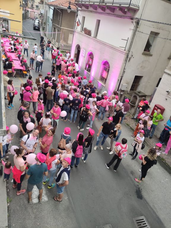 All’interno del pacco gara, a ciascun partecipante è stato consegnato un cappello rosa, che ha saturato il paese di un colore simbolico, diffondendo il messaggio AVIS.