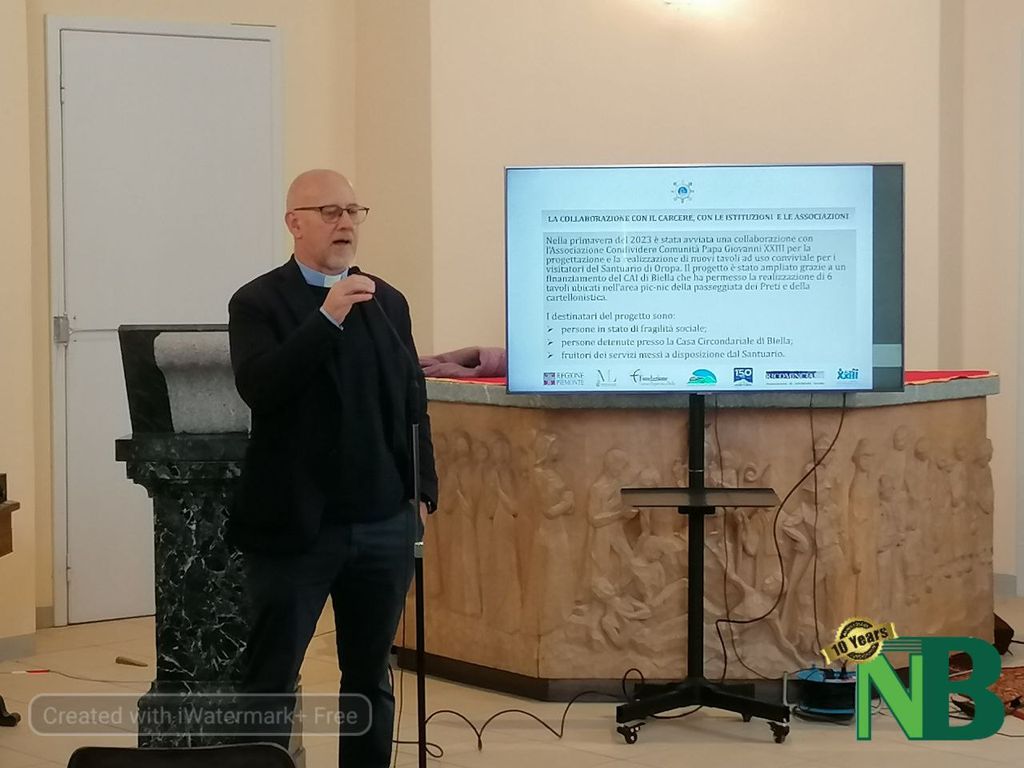 Ad illustrare il progetto erano presenti: Giancarlo Macchetto (amministratore del Santuario di Oropa), don Michele Berchi (rettore e presidente Associazione Agro Montis Oropense), Michele Colombo (presidente Fondazione Cassa di Risparmio di Biella), Andrea Formagnana (presidente CAI Biella) e Sonia Caronni (Garante Comunale dei diritti dei diritti delle persone private della libertà).