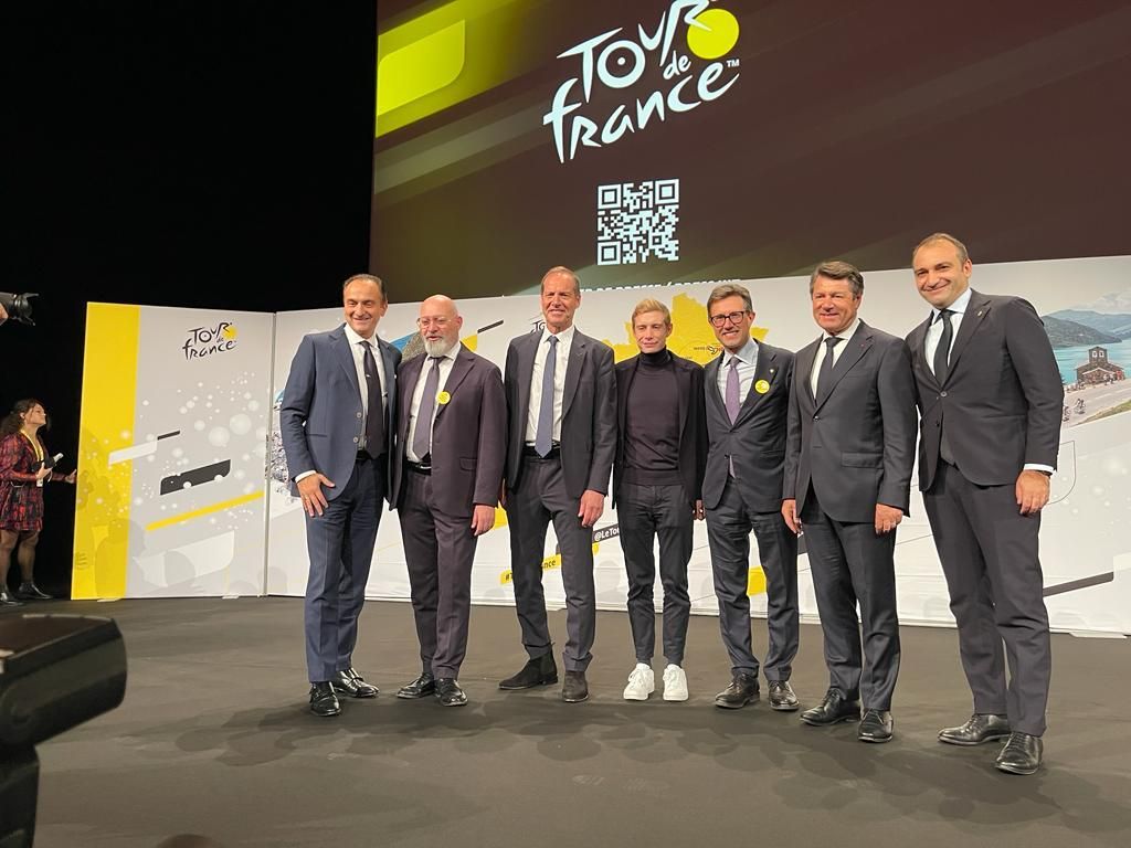 Alla presentazione ufficiale del Tour hanno partecipato a Parigi il presidente della Regione Piemonte Alberto Cirio e il sindaco di Torino Stefano Lo Russo.