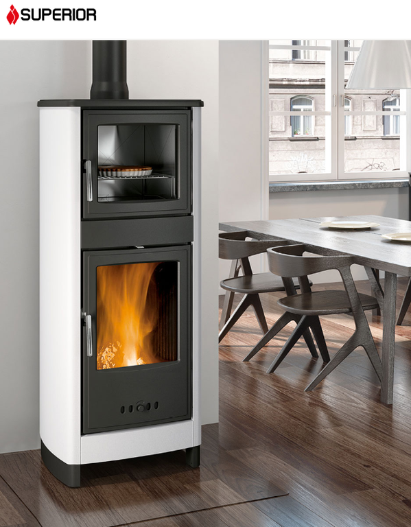 Superior Savina, la soluzione in cucina: la stufa multiuso dispone di un pratico forno per la cottura di pietanze, da oggi in un forno a legna.