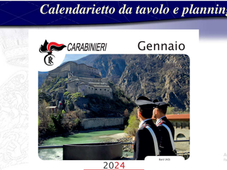 Infine, altre due opere completano l’offerta editoriale dell’anno 2024: innanzitutto il Calendario da tavolo, dedicato anche quest’anno al tema “i Carabinieri nei Borghi più Belli d’Italia”, riguarda piccole gemme arroccate fra gli scorci più suggestivi del Belpaese, il Paese dell’Arte, della Letteratura, dell’Ingegno italico. Sono state selezionate 12 immagini, una per mese, con Carabinieri ritratti in uno dei tanti borghi che impreziosiscono l’Italia, i quali restituiscono un quadro d’autore fatto di geografia, architetture e uniforme. Presenti località suggestive, come il vicino forte di Bard e i borghi piemontesi di Orta Sam Giulio e Volpedo. L’intero ricavato della vendita di questo calendarietto da tavolo è devoluto, come accaduto negli anni precedenti, all’Opera Nazionale di Assistenza per gli Orfani dei Militari dell’Arma dei Carabinieri.