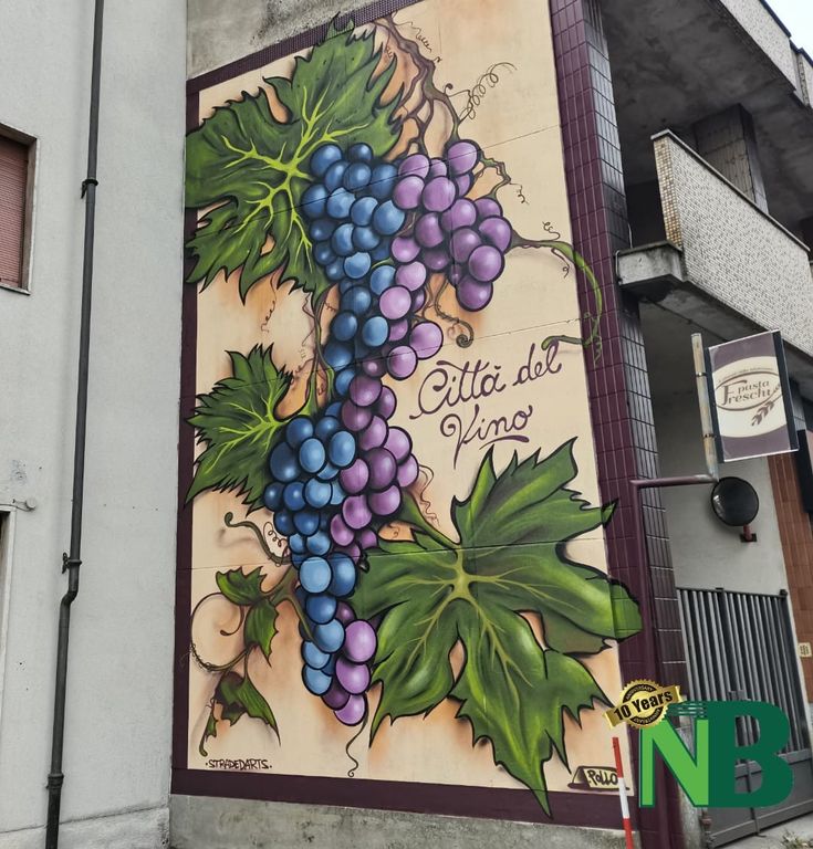 La nuova opera è dedicata alla viticoltura, con la sigla “Città del Vino”, impressa in via Milano, sul muro del palazzo che una volta ospitava la sede dell'Unicredit. Si tratta del secondo dei 4 murales in programma che puntano ad abbellire e rigenerare l'arredo urbano di Vigliano Biellese.