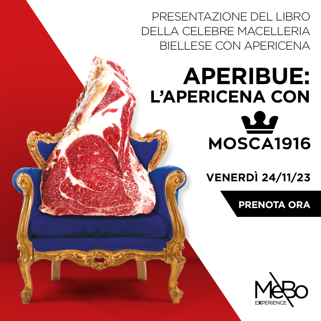 La carne di Bue Grasso sarà anche protagonista dell’evento di presentazione del libro, che si terrà il 24 novembre 2023 alle 19.30 nella cornice di MeBo Experience a Biella. I partecipanti alla serata, che è accessibile su prenotazione al costo di 30 €, avranno modo di gustare un menù preparato nelle cucine di Mosca 1916, protagonista assoluta la carne di Bue Grasso. A tutti i partecipanti verrà fatto omaggio di una copia del libro “Carne Rossa, Sangue Blu”.