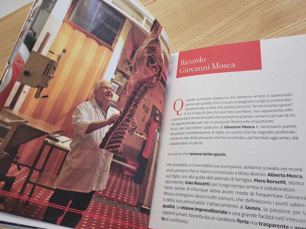 “Siamo felici di poter ricordare in modo tangibile mio padre a 3 anni dalla sua scomparsa - dice Alberto Mosca di Mosca1916 - La sua dedizione al lavoro era leggendaria, tanto che è rimasto al suo posto fino all’ultimo, anche durante il durissimo periodo del Covid. In questi 3 anni abbiamo cercato di seguire il suo esempio, lavorando per preservare l’eredità che ci ha consegnato e per rispondere alle sfide che la contemporaneità ci pone di fronte. Lo ricordiamo con un libro che parla anche di Bue Grasso, una passione che lo ha accompagnato per tutta la vita. Un libro che ci auguriamo possa essere d’aiuto ai nostri clienti, che al suo interno possono trovare tante informazioni utili, tra cui alcune ricette di semplice realizzazione”.