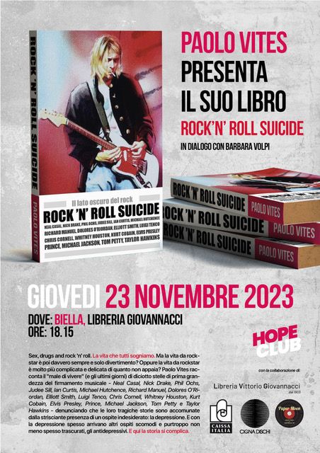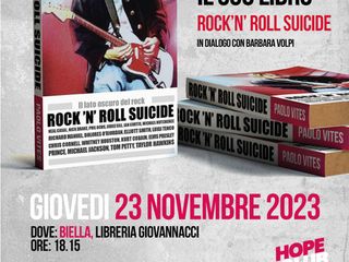 Giovedì 23 novembre, presso la Libreria Giovannacci di Biella, alle ore 18:15, Paolo Vites presenta il suo libro “Rock’n’ roll suicide”, in dialogo con Barbara Volpi. A Candelo invece, alle ore 21:00, la proiezione, presso il Cinema Verdi di John Cusack Alta Fedeltà. Seguirà l’intervento del giornalista Paolo Vites e lo precede la presentazione del progetto “Nella mia ora di libertà: un’audioteca in carcere”.