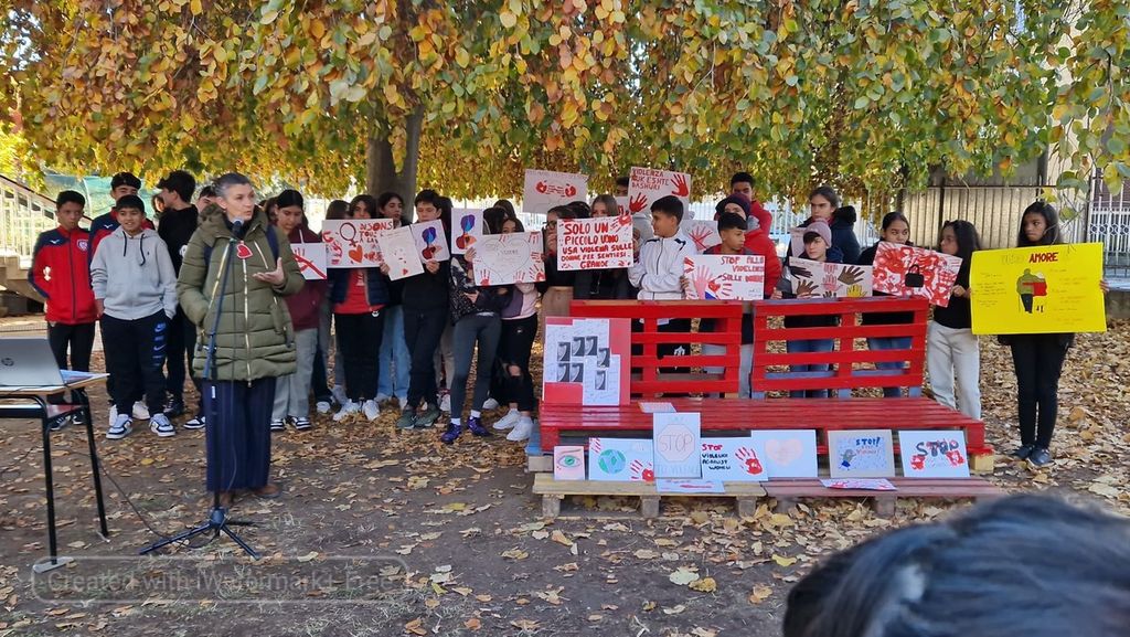 I ragazzi delle medie di Chiavazza a Biella dicono "no" alla violenza contro le donne. E lo fanno con l'inaugurazione avvenuta questa mattina mercoledì 22 novembre, di una panchina che hanno realizzato loro, che ha trovato spazio nei giardino della scuola.
