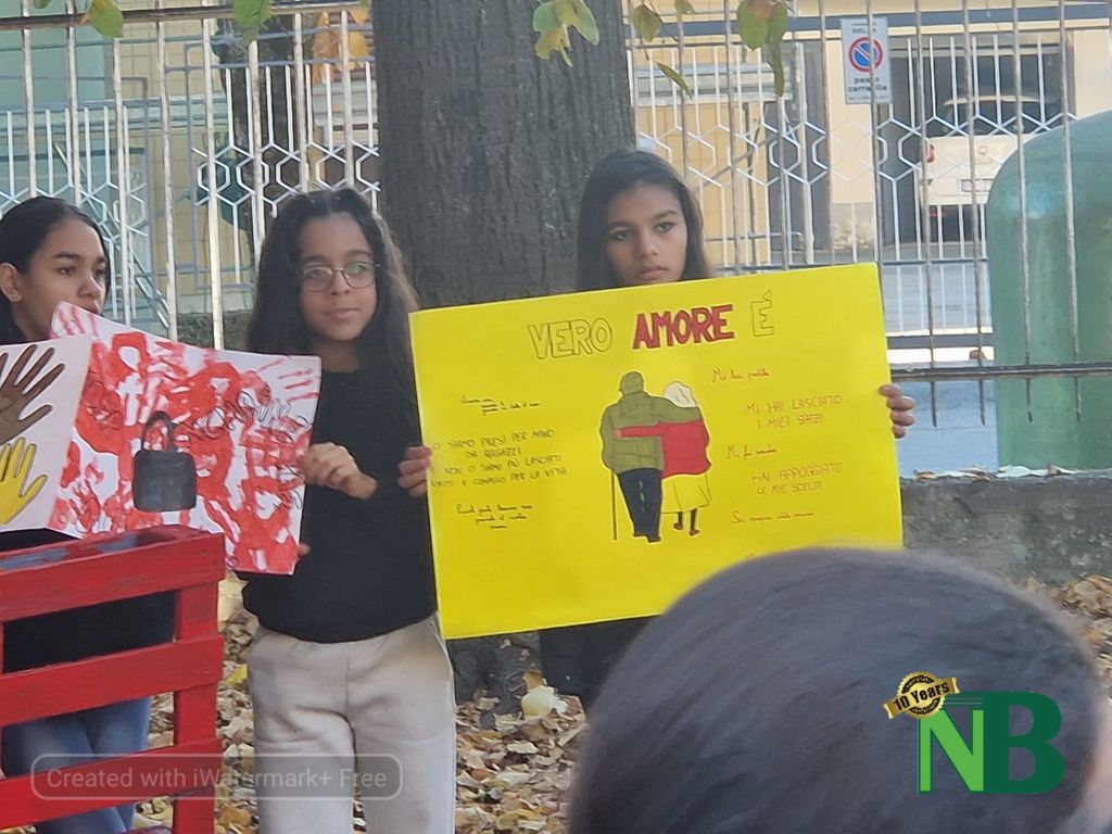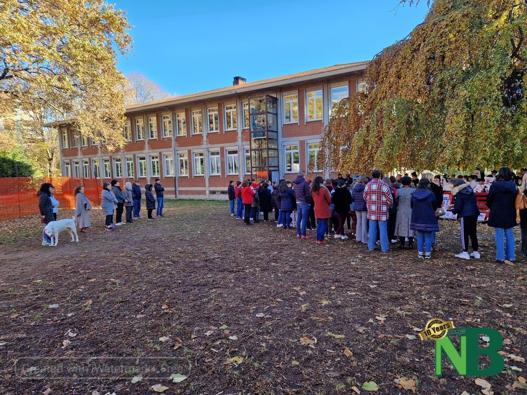 Per l'occasione la scuola si è fermata: professori e le classi si sono riunite in giardino. Alcune classi hanno letto dei pensieri, altri ragazzi hanno recitato.