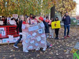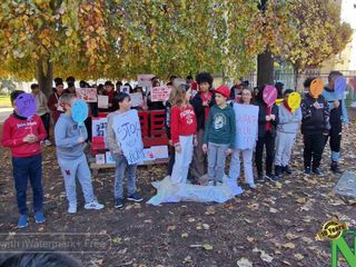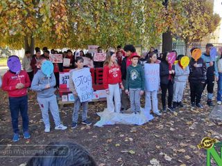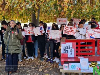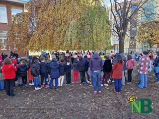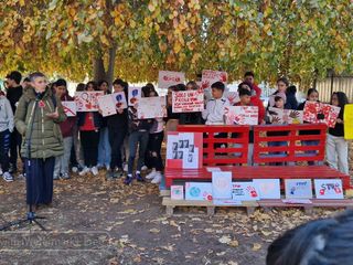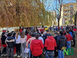 Per l'occasione la scuola si è fermata: professori e le classi si sono riunite in giardino. Alcune classi hanno letto dei pensieri, altri ragazzi hanno recitato.