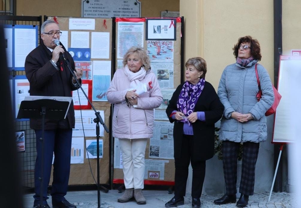 Nel suo intervento il Sindaco Paolo Gelone ha chiesto un minuto di silenzio per tutte le donne che hanno perso la vita e ha sottolineato come si debba fornire alle donne gli strumenti per difendersi e sentirsi più sicure. A tal fine ha anticipato la volontà dell'Amministrazione comunale di organizzare un corso di difesa gratuito per le residenti. Erika Vallera, consigliera delegata alle pari opportunità ha evidenziato l'importanza di un impegno costante nel quotidiano per far sì che le parole contro la violenza sulle donne e la disparità che si sentono ad ogni 25 Novembre non risultino vuote. Ha invitato tutti i presenti a riflettere e ad impegnarsi, ognuno per la propria parte, ogni giorno per non far mai silenzio davanti alla violenza.