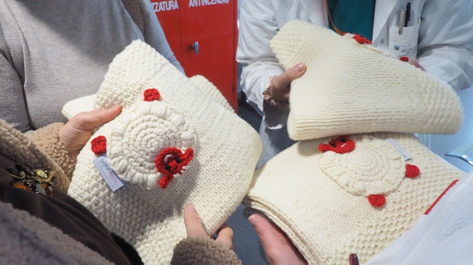 Nei giorni scorsi sono state consegnate alla S.C. Ostetricia e Ginecologia più di venti copertine, lavorate a maglia e decorate con pecorelle bianche e rosse. Proprio quest’ultime sono uno dei simboli dell’Associazione e rievocano il ciclo di creazione: la lana ricavata dalle pecore viene filata in gomitoli che, lavorati con pazienza e cura, divengono infine dei manufatti unici. Le volontarie hanno così commentato l’iniziativa: “Essendo tutte mamme siamo state molto contente di portare avanti questo progetto che è stato accolto positivamente da tutte.