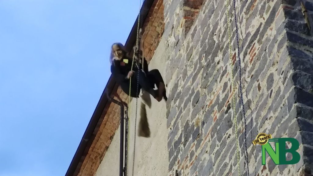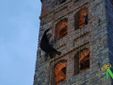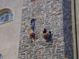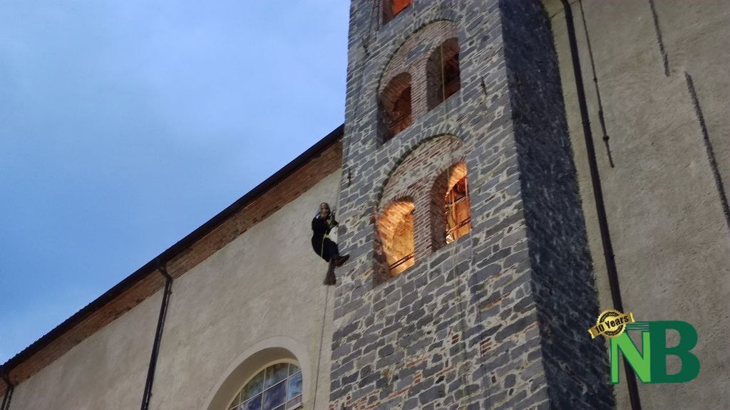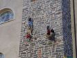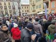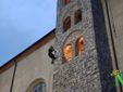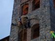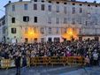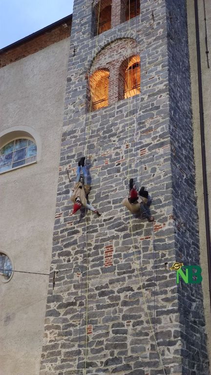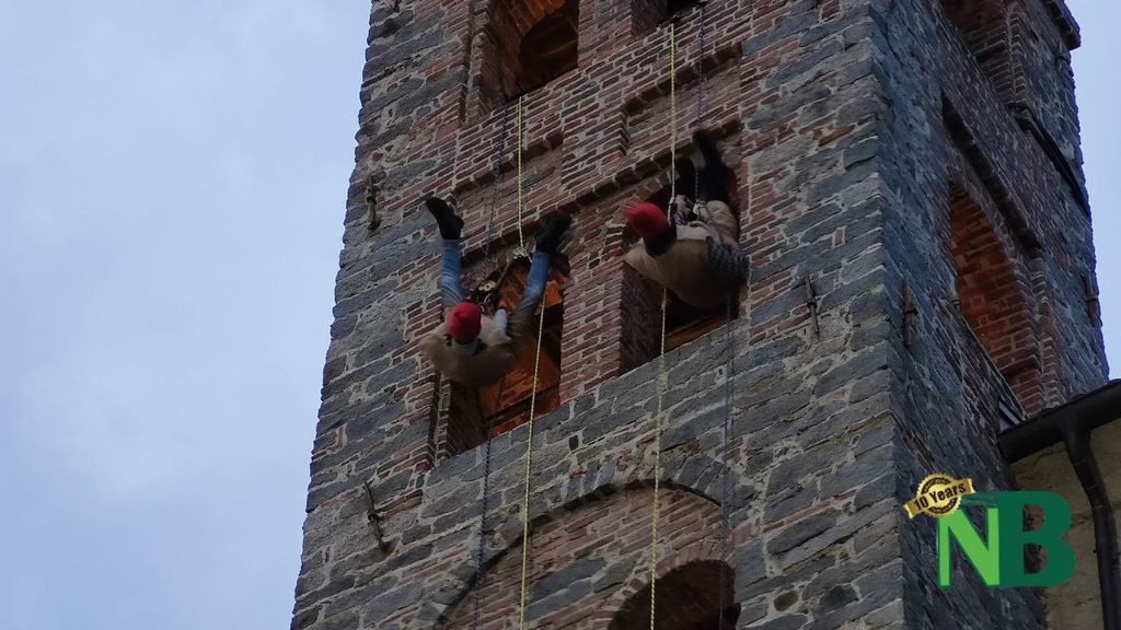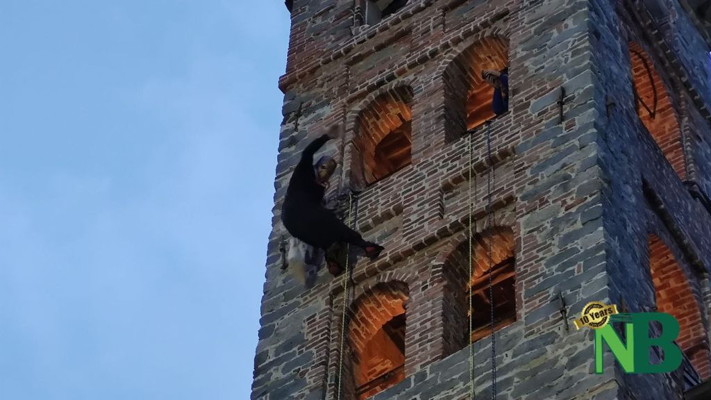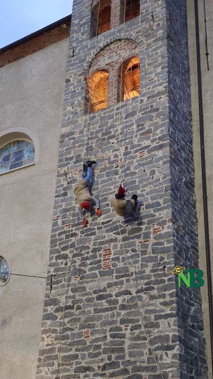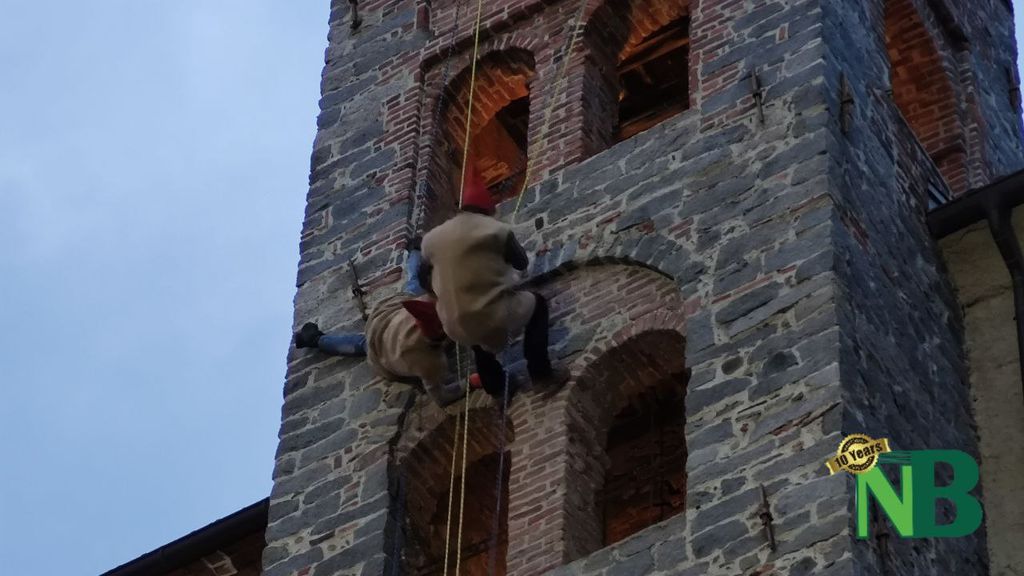 Pubblico delle grandi occasioni al rione Riva di Biella per la calata della Befana dal campanile della chiesa di San Cassiano.