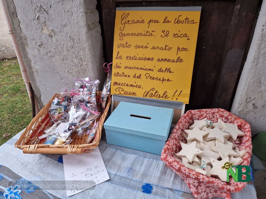 Anche se l'Epifania è già passata, c'è ancora tempo per vederlo fino al 14 gennaio, come anche i meravigliosi presepi nel bosco. Piccoli gioielli realizzati dagli abitanti ma anche da semplici appassionati, che hanno trovato spazio in vecchie macchine da cucire, bottiglie, damigiane, cassette della frutta e anche in una vecchia macchinina dell'autoscontro. Alcuni sono realizzati in legno, atri in vetro, in cartone, e c'è anche una natività realizzata con delle caffettiere. Sono tanti, oltre 100, e rendono ancora più piacevole una di per sé già piacevole passeggiata in mezzo ai boschi della vallata.