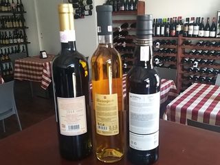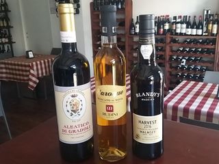 Il sommelier Maurizio Mazzuchetti titolare dell 'Enoteca propone tre vini molto interessanti di cui: Moscato di Noto dal vitigno Zibibbo ( Moscato di Alessandria ), Alleatico di Gradoli e Madeira malmsey colheita 2016 con la formula di € 18 per tre calici, per chi lo desidera saranno serviti sia taglieri standard che taglieri particolari composti da dolci casarecci ed erborinati particolari come giusto abbinamento ai vini degustati.