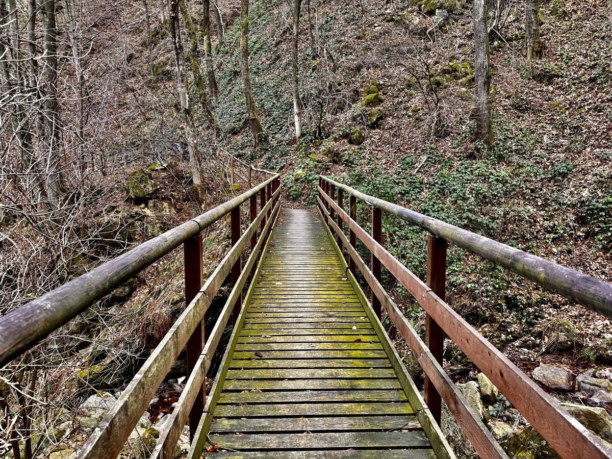 Superato il borgo; alla chiesa deviamo verso il Cimitero per imboccare un altro sentiero super divertente che: prima raggiunge la sommità della collina ad est del Favaro, poi scende ripido fino nel fondovalle dove si imbocca il percorso che porta al Gorgomoro. Attensione a tre grosse piante abbattute da superare nell'ultimo tratto prima di arrivare alla famosa vasca di raccolta idrica. Imboccato il sentiero del Gorgomoro la discesa diventa goduria pura. Occorre solo prestare un pò di attenzione nei punti il cui il fondo è particolarmente fangoso e alla scalinata (portage di qualche metro) necessaria per superare uno dei ponticelli. Peccato che le lame del torrente non siano valorizzate perchè da sole valgono il giro e certamente potrebbero rappresentare un'attrattiva turistica importante e non solo ciclistica, considerato che sono a pochi minuti dal centro del capoluogo.