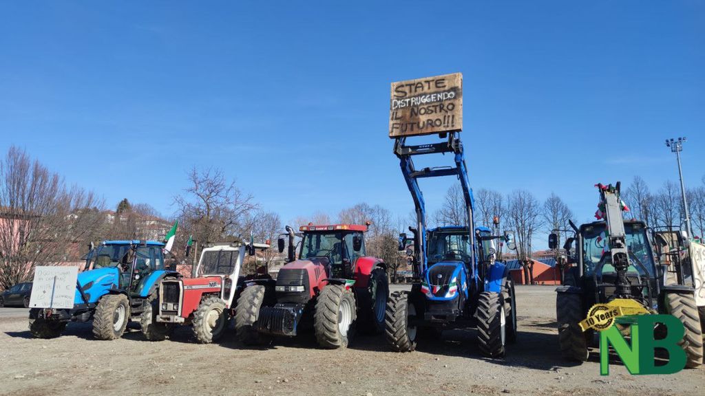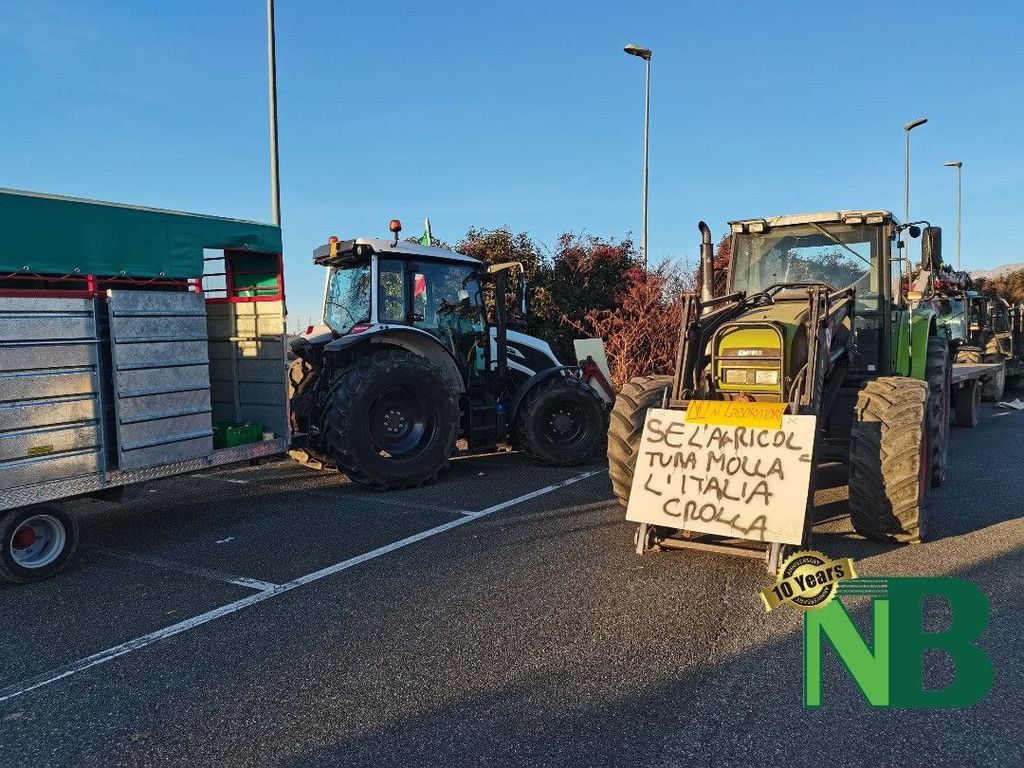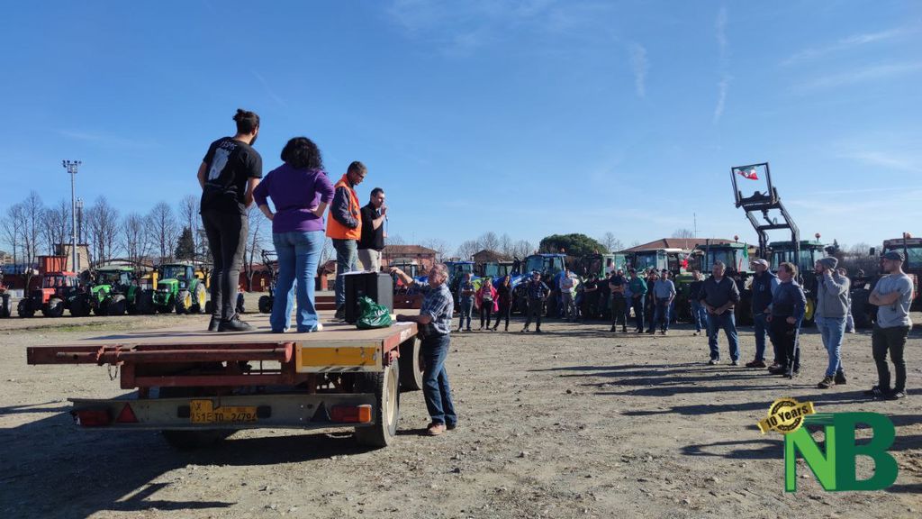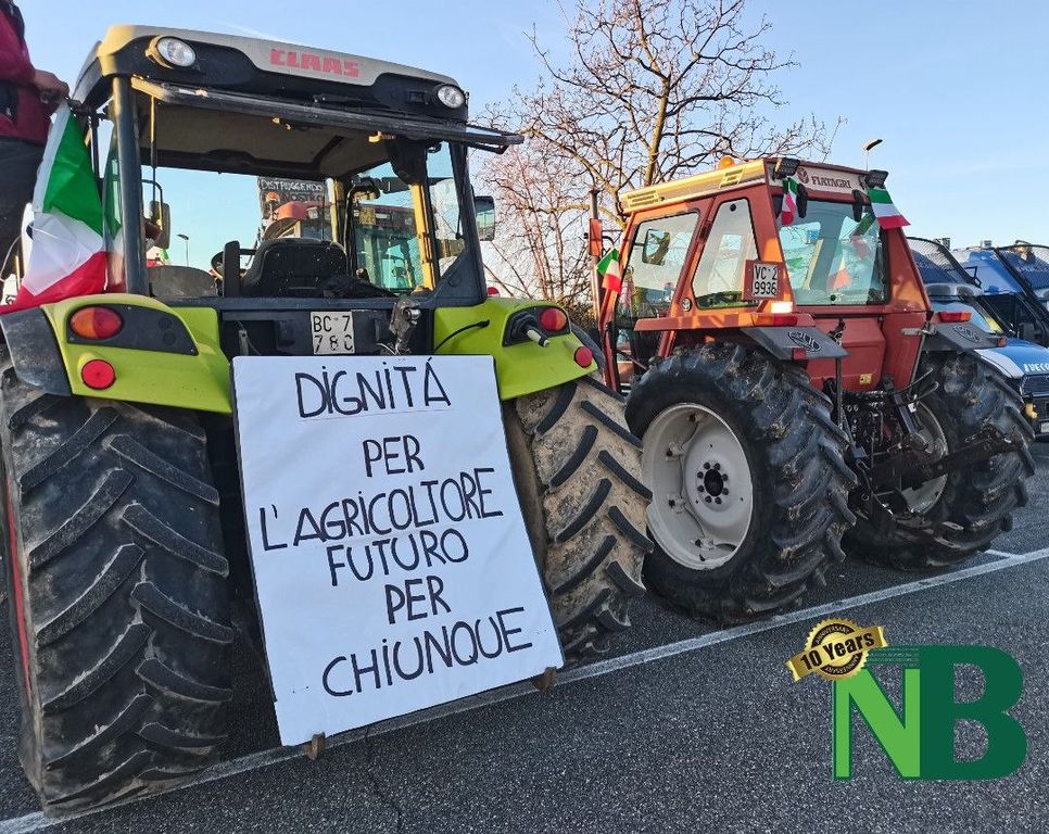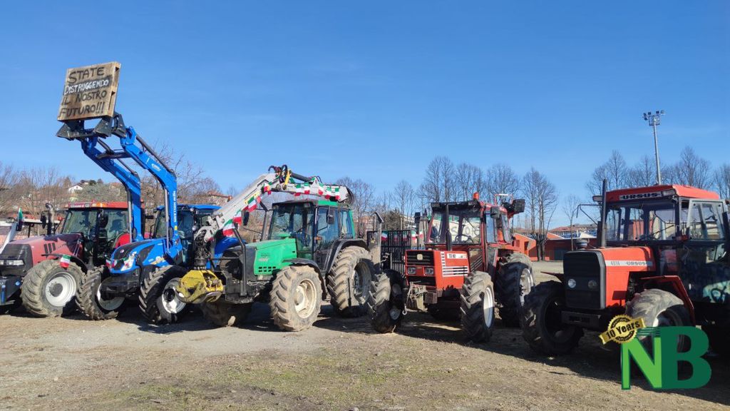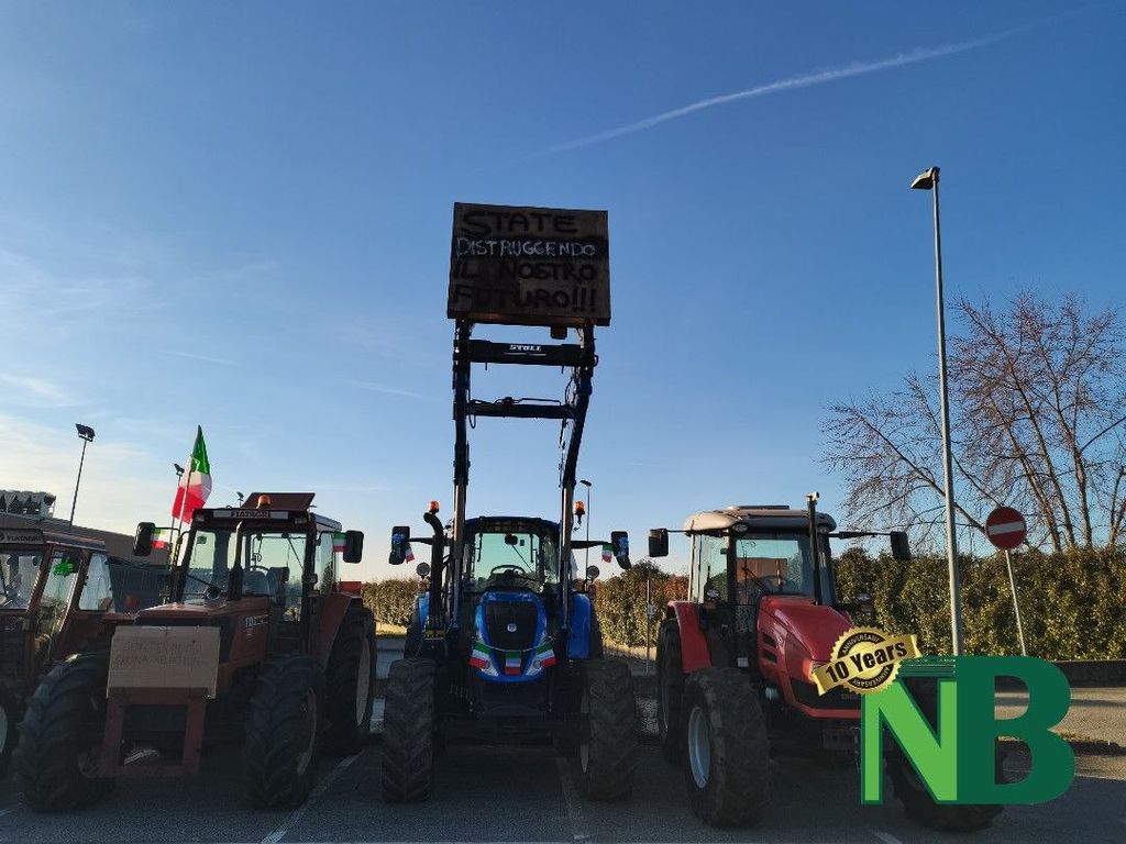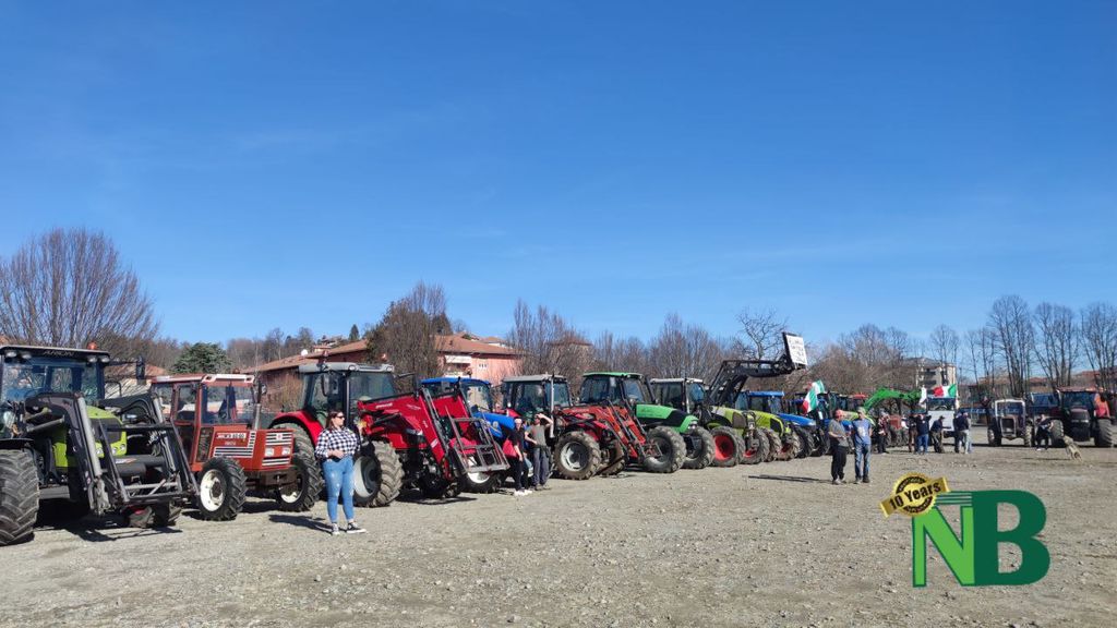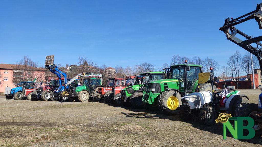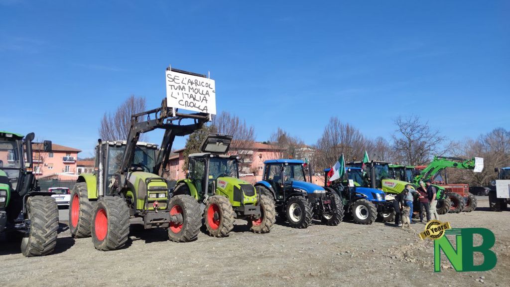 Sono solo alcuni degli striscioni apparsi questa mattina nel piazzale di via della Tollegna, a Vigliano Biellese, in occasione della protesta dei trattori. La manifestazione, organizzata dal Comitato Cittadino Biellesi, ha visto la partecipazione di oltre 40 mezzi agricoli provenienti non soltanto da tutto il Biellese, ma perfino dalle province vicine di Vercelli e Novara.