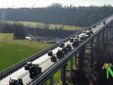 Traffico in tilt sul Ponte della Tangenziale per il passaggio dei trattori, in occasione della manifestazione degli agricoltori biellesi. Ad assistere il lungo corteo tanti automobilisti bloccati in prossimità dell'uscita di Biella.