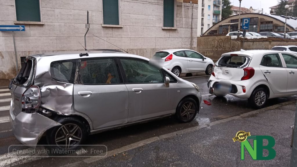 Incidente nel primo pomeriggio di oggi sabato 10 febbraio in via Trieste a Biella tra due auto.